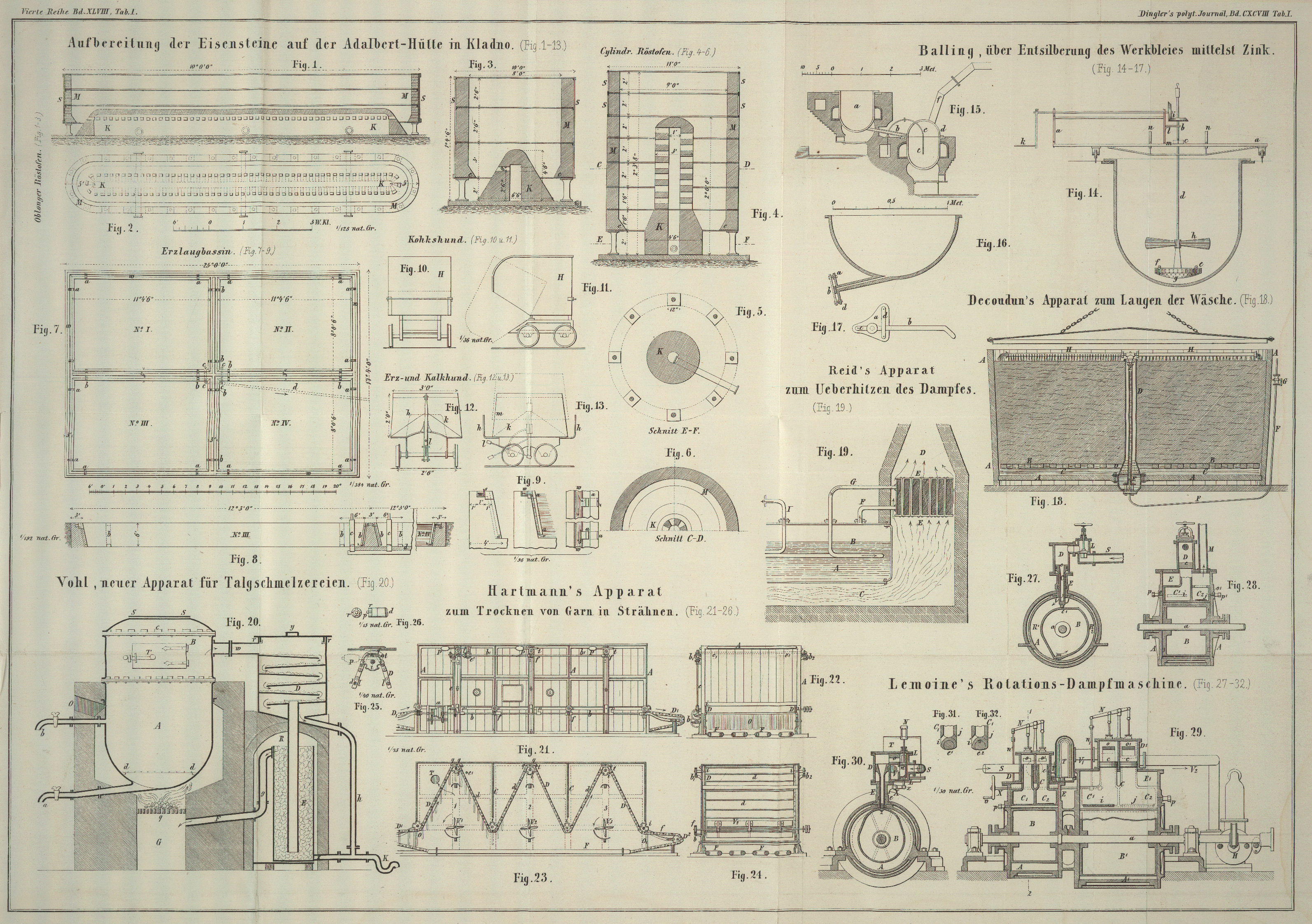 IX. Notizen aus der Adalbert-Eisenhütte in Kladno; von Johann Zeman. Mit Abbildungen auf Tab. I. 32