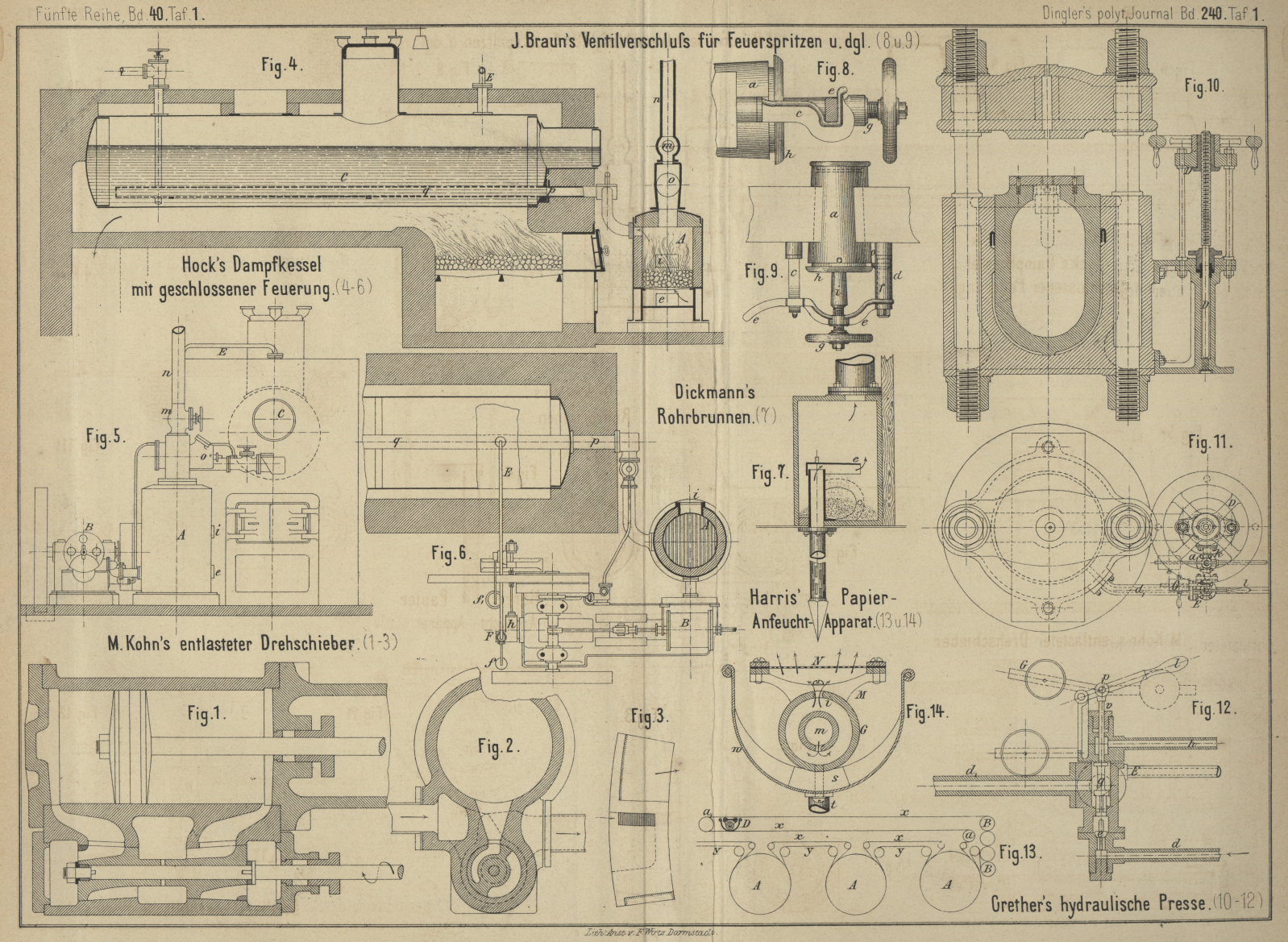 Gasfallhammer 7Robelet's Fallhammer 8Fr. W. Schnutz's selbstthätige Steuerung für Dampfhämmer