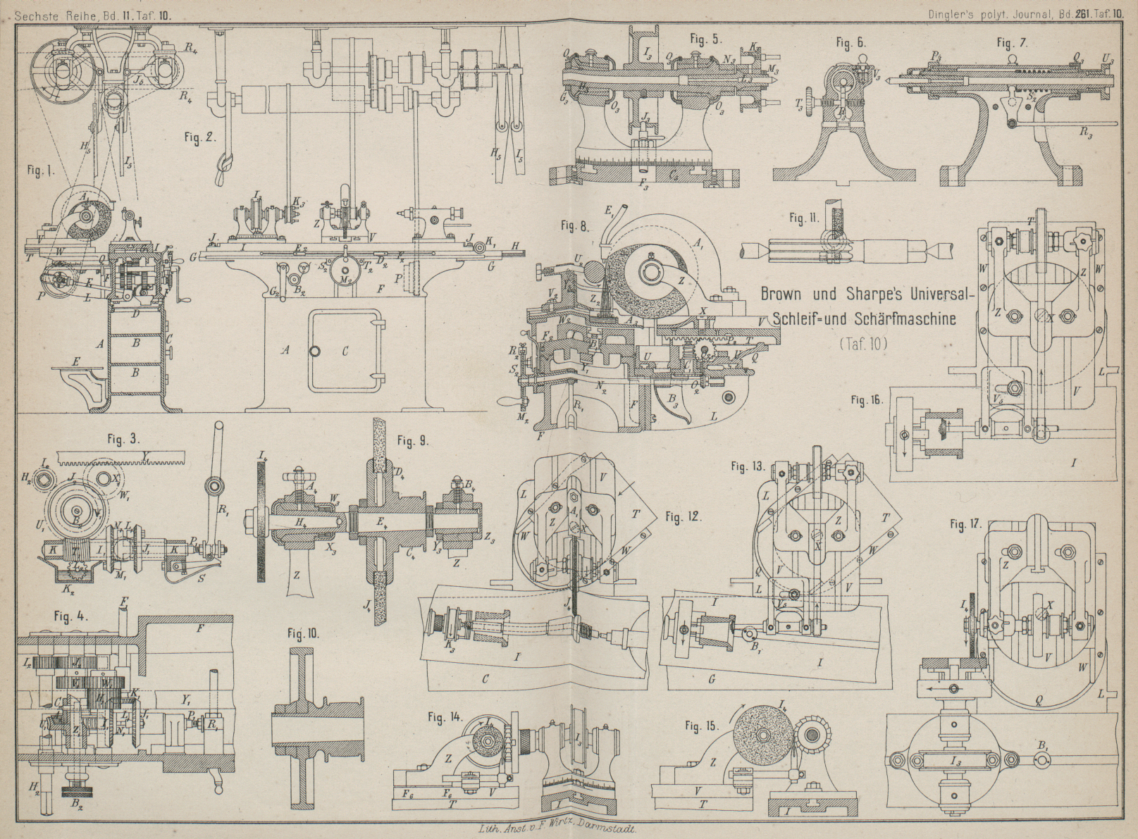 Berichtigungen. In der Beschreibung der Wasserwerke in Buffalo bezieh. Gashill's Zwillings-Compound-Dampfpumpe ist S. 319 Z. 1 v. u. zu lesen: „33mm,4“ und „44mm,4“ statt „350mm“ und „470mm“. – In der Beschreibung des Regulators von Therkelsen und Bruun S. 188 ist die richtige Wirkungsweise angezweifelt, da die Räder a und c gleich groſs angenommen sind. Diese Voraussetzung ist irrig, ebenso die daraus gezogene Folgerung. AtlaszuDingler's polytechnischem Journal. Band 261. (Siebenundsechzigster Jahrgang.) Jahrgang 1886. Enthaltend 33 lithographirte Tafeln. Stuttgart.Verlag der J. G. COTTA'schen Buchhandlung. Tab. I. Tab. II. Tab. III. Tab. IV. Tab. V. Tab. VI. Tab. VII. Tab. VIII. Tab. IX. Tab. X. Tab. XI. Tab. XII. Tab. XIII. Tab. XIV. Tab. XV. Tab. XVI. Tab. XVII. Tab. XVIII. Tab. XIX. Tab. XX. Tab. XXI. Tab. XXII. Tab. XXIII. Tab. XXIV. Tab. XXV. Tab. XXVI. Tab. XXVII. Tab. XXVIII. Tab. XXIX. Tab. XXX. Tab. XXXI. Tab. XXXII. Tab. XXXIII.